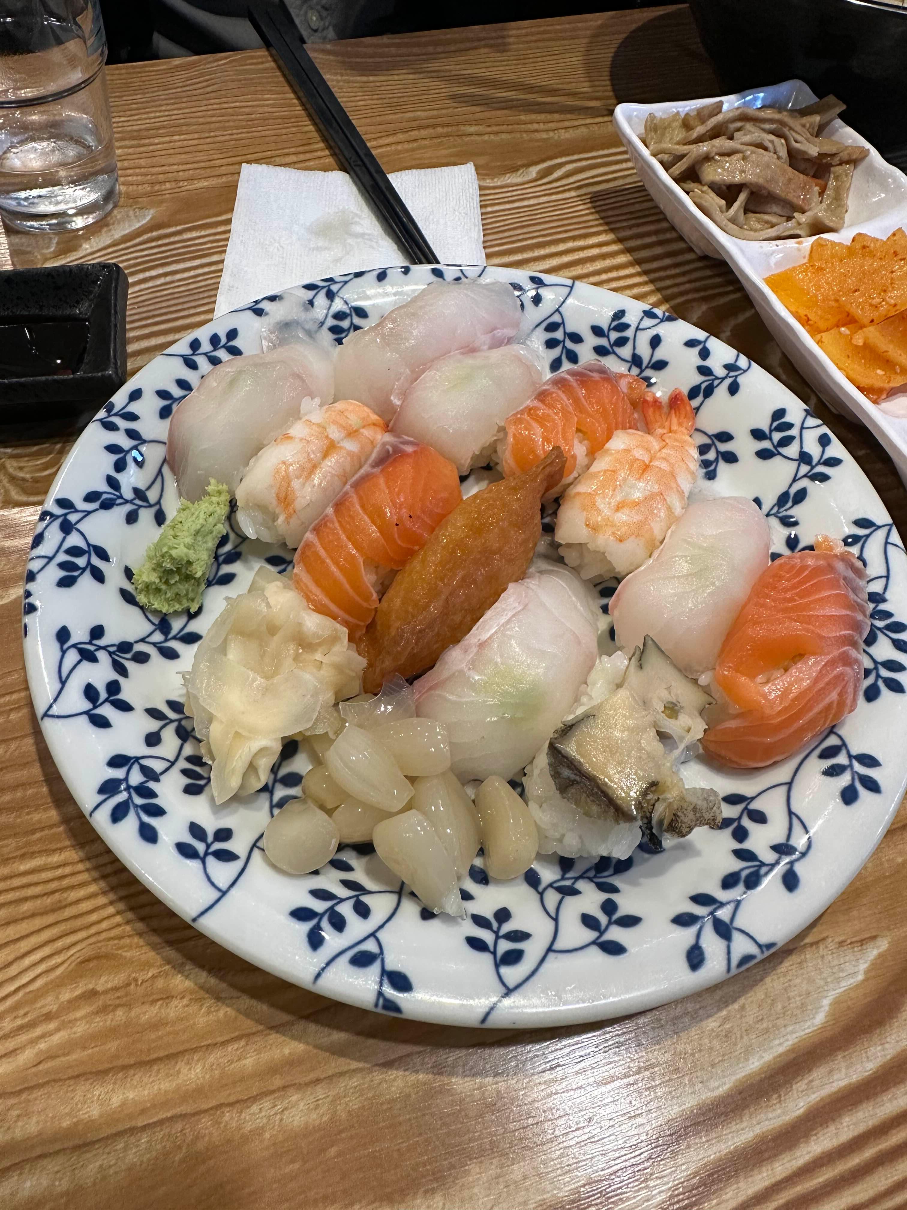 스시는 라멘과 곁들이기에 좋은 구성으로, 간단하지만 만족도는 충분한 조합이었습니다.